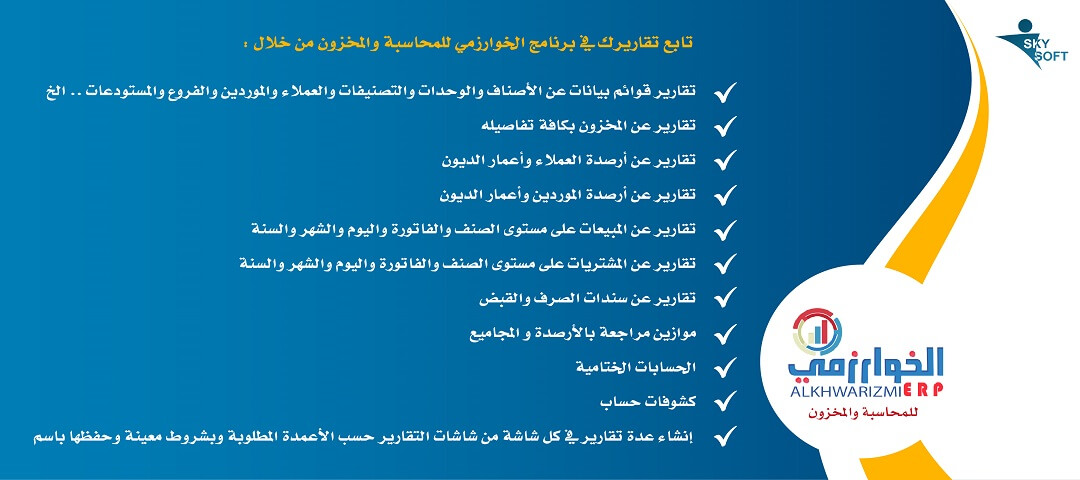 مؤسسة حاتم سلمان الشرارياستخدمت برامج كثير ، ماحصلت افضل واسهل من الخوارزمي وفيه جميع المتطلبات والافضل من هذا كله ، الدعم الفني 🤍🤍 على مدار الساعه ، شكر خاص لشركة سكاي سوفت وطاقم العمل على المجهودات اللي تقدمونها لنا وللعملاء كافه🤍